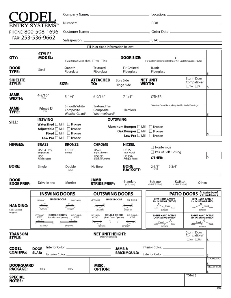 Order Forms CODEL Doors